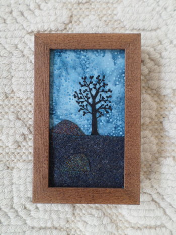 This piece of my original hand embroidery is framed. 8.5" x 10" frame, without the frame the piece itself measures approximately 4.5" x 6.5".